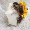 This is a beautiful and rare doll’s parasol or umbrellas, decorated with sunflowers. It measures 8 inches long and 8 inches in diameter. It is in good condition as shown in photos.
