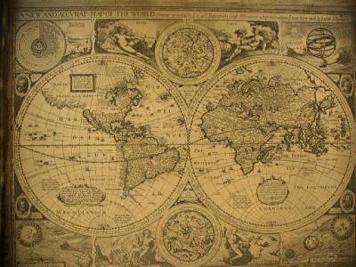 Vintage Reproduction, 16th C Map of the World Artwork- Wall Decor 23in x 15in (sftz)