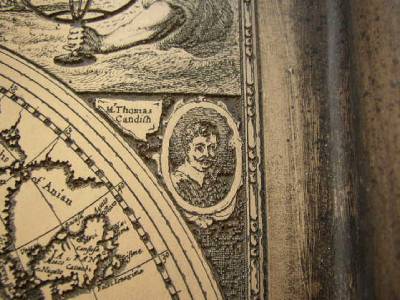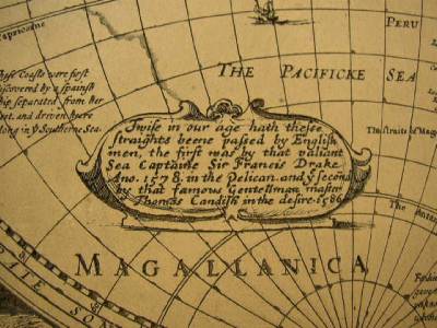 This is a beautiful, etching of the 16th century Map of the World, made of unknown material that resembles wood or wood composition. Framed, it measures 15 inches high, 23 inches long and about 3 inches thick. The map has writings that says: Accurate Map of the World, drawn according to truest descriptions, latest discoveries and best observations have been made by English and strangers such as: Francis Drake; Ferdinand Magellan; Olivarus Vander Noort; and Thomas Candis. It shows several dates such as 1578, 1586 and 1626. It is in good vintage condition as shown in photos. Packaged weight is about 5 lbs.